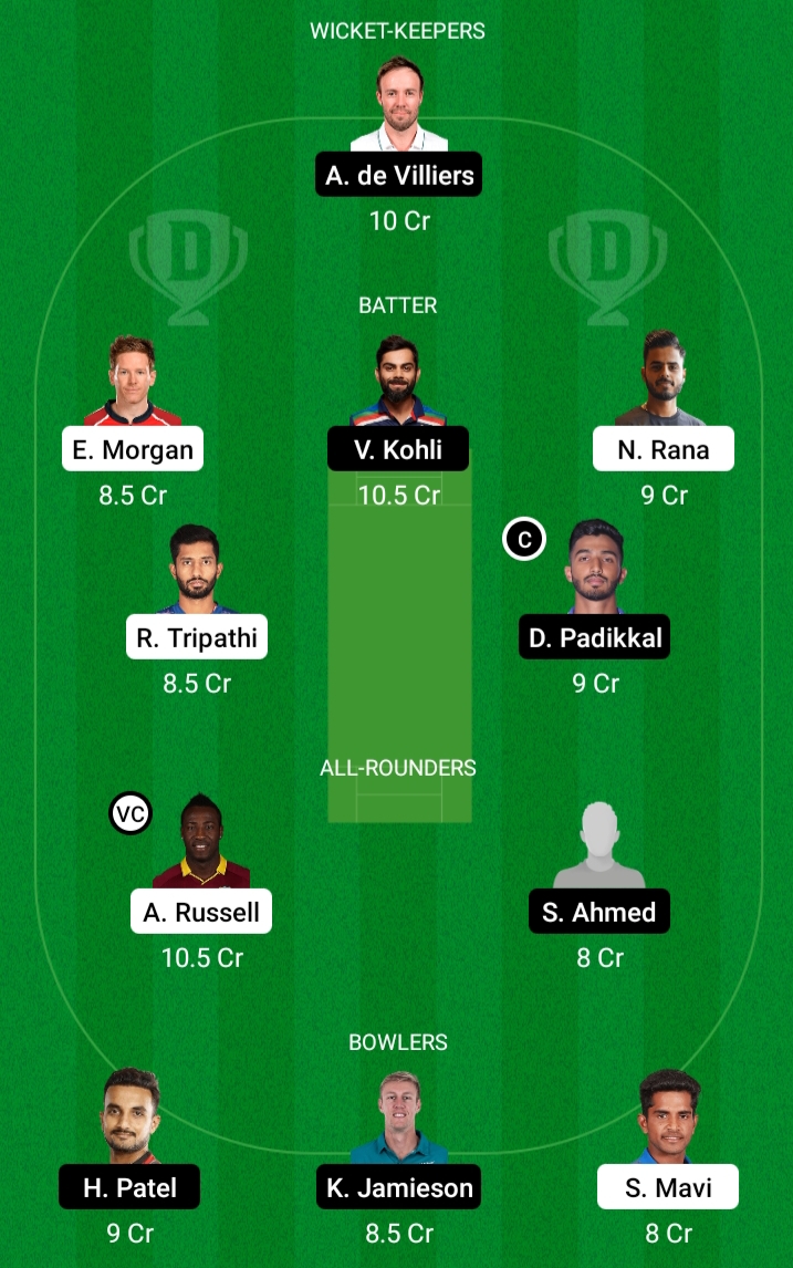 KKR vs RCB की तरफ से ओपनिंग नीतीश राणा और शुभमन गिल करेंगे इस में कोई बदलाव नही देख रह है तीसरे नंबर पर उतर सकते हैं राहुल त्रिपाठी और उनके इविन मोर्गन जो कोलकाता नाइट राइडर्स के कप्तान अभी हैं? टीम का हाल देख नीचे उतरेंगे सुनील नरेन, ओपेंग में भी उतर सकते हैं और निचले क्रम में आंद्रे रसेल 6वें नंबर पर उतरेंगे कुलदीप यादव को टीम में शामिल नहीं किया जाएगा उनकी जगह टीम में शिवम् मावि टीम में खेलेंगे